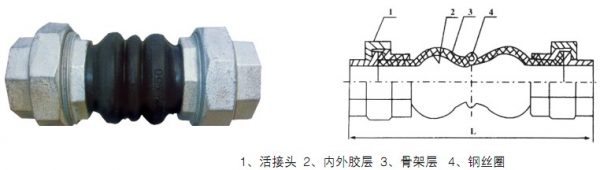 JGD-B型絲扣連接橡膠接頭又稱螺紋連接,它是通過內(nèi)外螺紋把管道與管道、管道與、閥門連接起來。